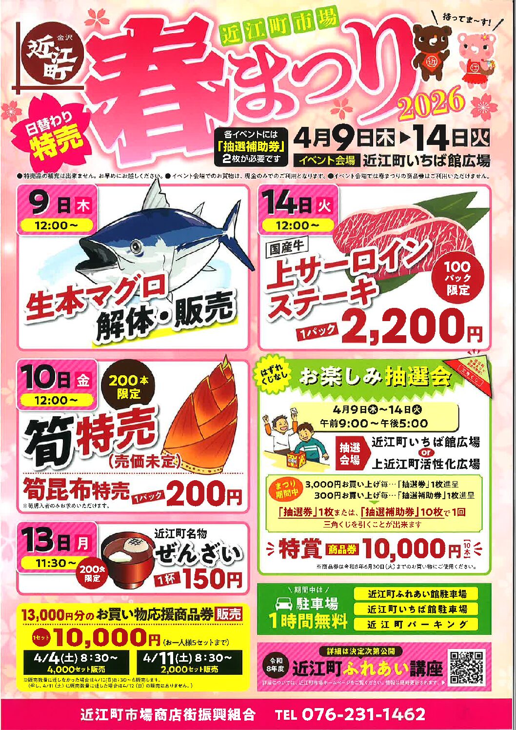 【お楽しみ抽選会場:上近江町活性化広場、近江町いちば館広場】