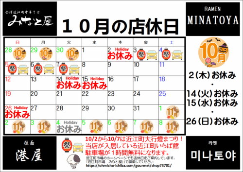 10月の店休日
