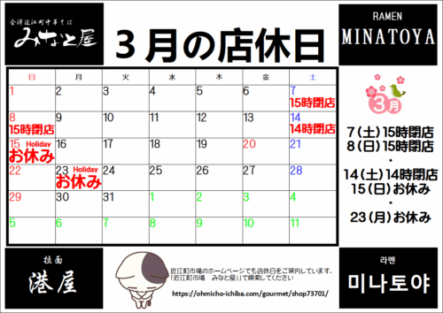 3月の店休日